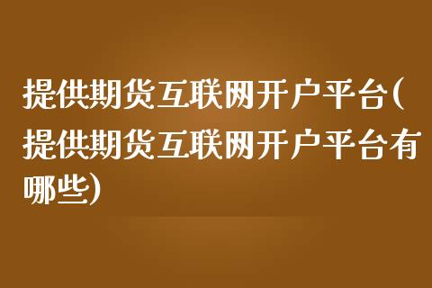 随着互联网技术的不断发展,期货交易也逐步走向线上化,投资者可以通过互联网开户平台进行期货交易。将介绍提供期货互联网开户平台的平台,并详细阐述其优点、缺点以及选择时的注意事项。